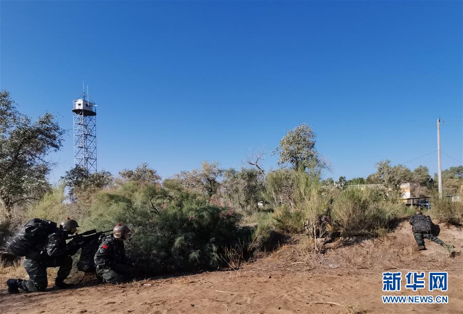 在中吉“合作-2019”联合反恐演练沙漠追剿战斗中,“山鹰”突击队与吉尔吉斯斯坦国民卫队“黑豹”特战旅的特战队员抵近侦察(8月11日摄)。新华社记者刘芳摄