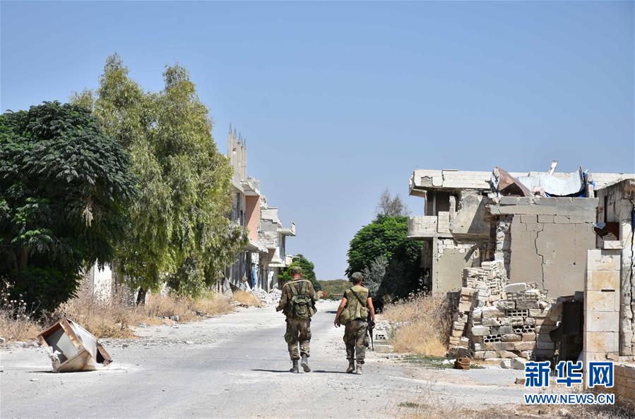 8月23日,在叙利亚哈马省,叙利亚士兵进入莫雷克镇。