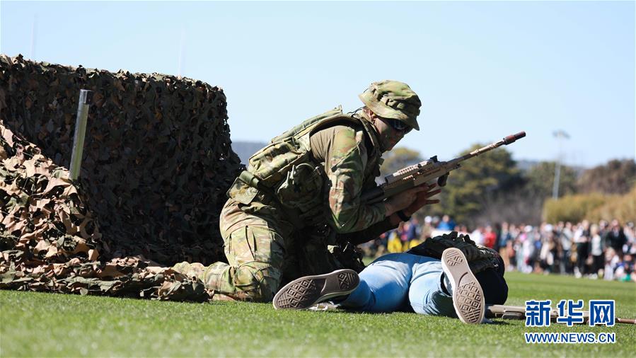 这是8月24日在澳大利亚堪培拉的澳大利亚国防学院拍摄的步兵地面攻击展示。 位于澳大利亚堪培拉的澳大利亚国防学院24日举行了一年一度的开放日活动。参观者可以在活动中看到各项表演,还能获得在学院学习生活的信息。 新华社发(储晨 摄)