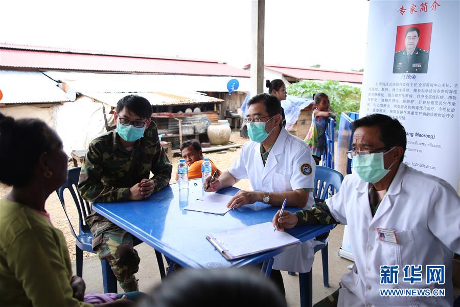 8月24日,在老挝南部阿速坡省萨南赛县,中国人民解放军“和平列车”医疗队重返灾区开展医疗服务活动。 新华社发(“和平列车”医疗队供图)