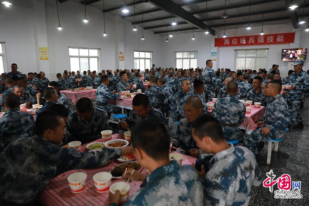 如何在规定时间内,做出供应几百上千人的可口饭菜,是兵站官兵必须完成的基本任务。马智辉介绍,“在一次接待保障任务过程中,保障人员达到近2000人,我们需要制作近2000人的主食和菜品,兵站仅以1:100的比例进行保障,由于兵站人员较少,干部、战士全部参与,我们从上午10点一直开始做主食到下午4点,6个小时才做出近2000人的主食。配菜要从早上8点开始一直配到下午4点。紧跟着保障完之后,还要接着8点开始制作近2000人第二天的早餐,按照我们的定量标准,每人以3个馒头计算,制作5000多个馒头,也就是说我们的战士们要连轴转,没有休息时间。从晚上8点坚持到第二天早上8点,保障完过往部队以后才能进行休息。”中国网记者 董宁摄影