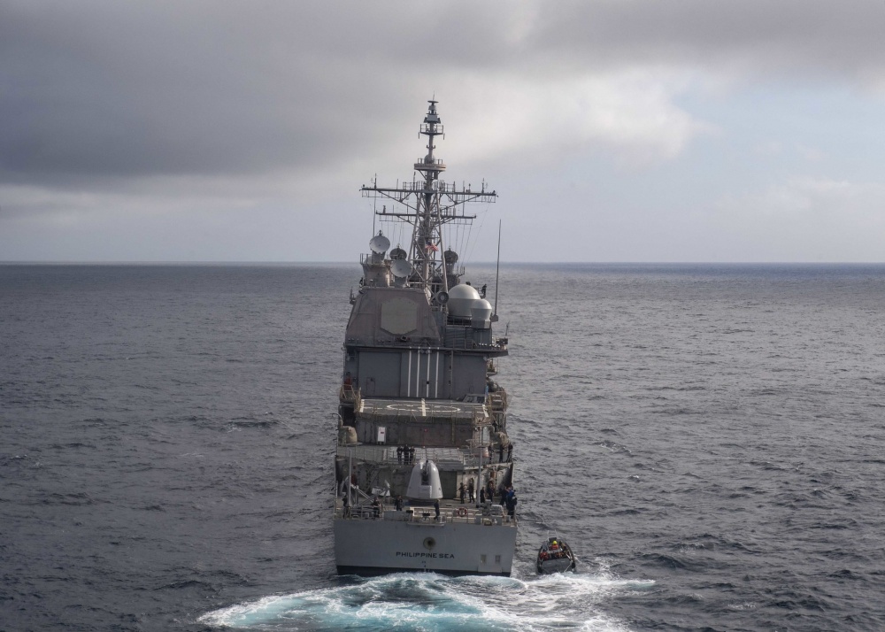 挪威海军宙斯盾舰与美国海军巡洋舰在大西洋合练
