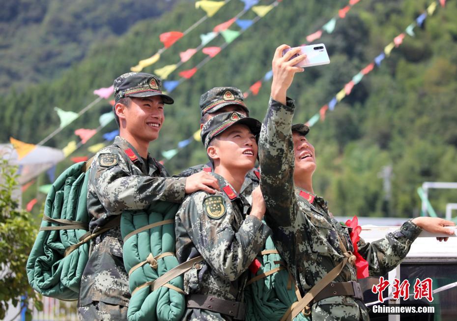 8月29日,武警福建总队三明支队执勤一中队组织驻守在深山执勤点上的退伍老兵撤勤。9名满服役期的老兵深情告别大山,告别日夜坚守的哨位。图为退役老兵合影留念。文/黄潮炜 胡慕林 图/胡鑫