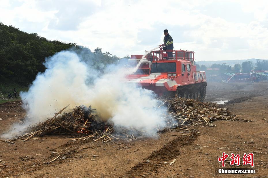 装甲车参加演练灭火。文/杨毅 图/吕文正