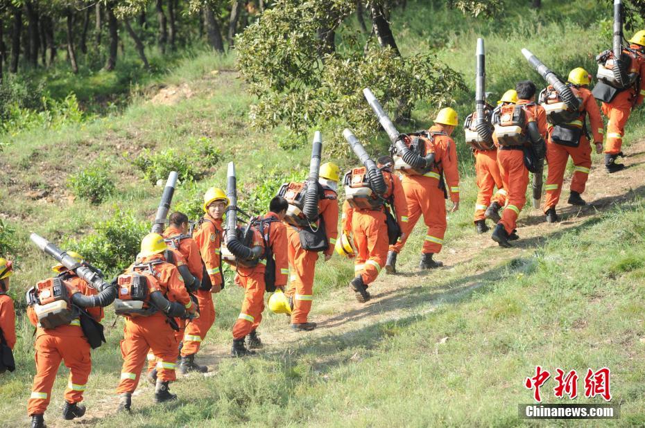 森林消防员奔赴演练现场。文/杨毅 图/吕文正