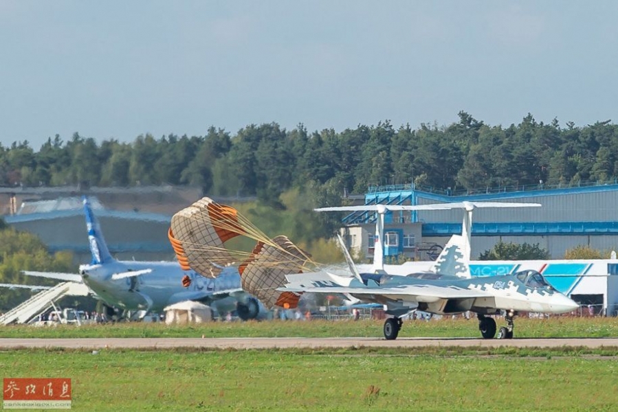 空中拉手刹!俄苏-57着陆时秀开伞特技