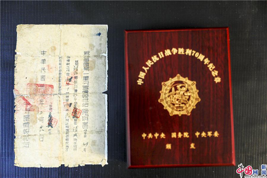 老人一生传奇,却又默默无闻,抗日战争胜利70周年时,老人被授予纪念章。陆劲竹 摄