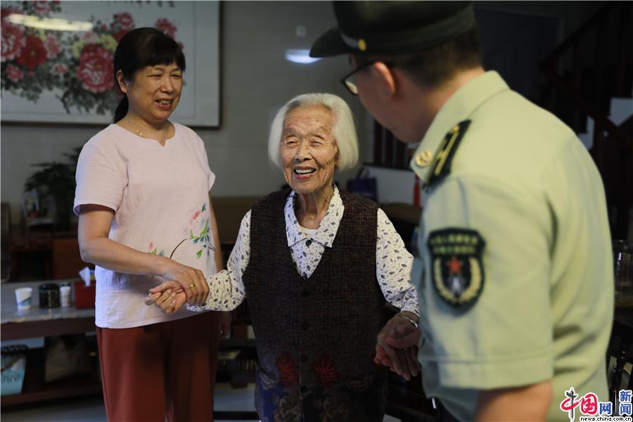 看到新时代的官兵朝气蓬勃,老人发自肺腑的高兴。在看望结束时,老人起身教导大家,一定要专心工作,为部队建设多做贡献。陆劲竹 摄