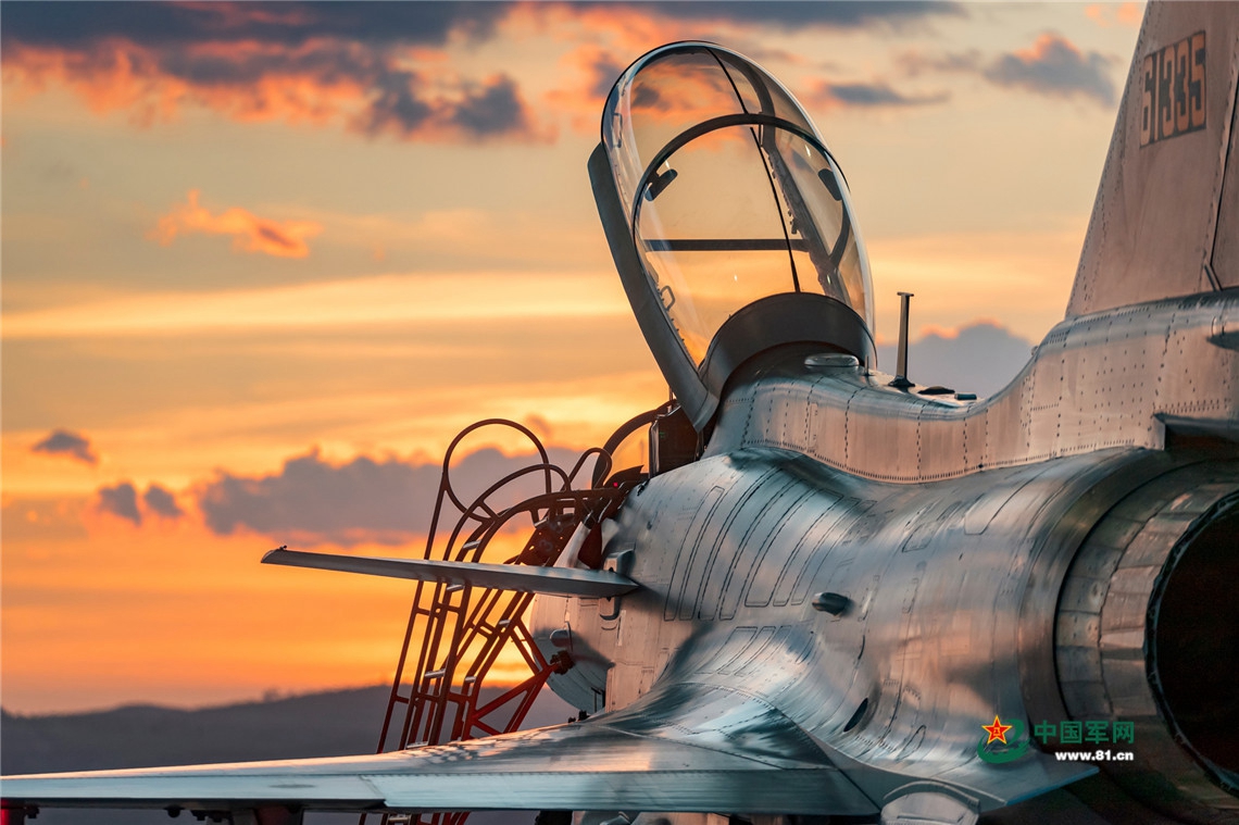 温柔的晚霞衬托出战机俊朗的气质。杨盼 摄