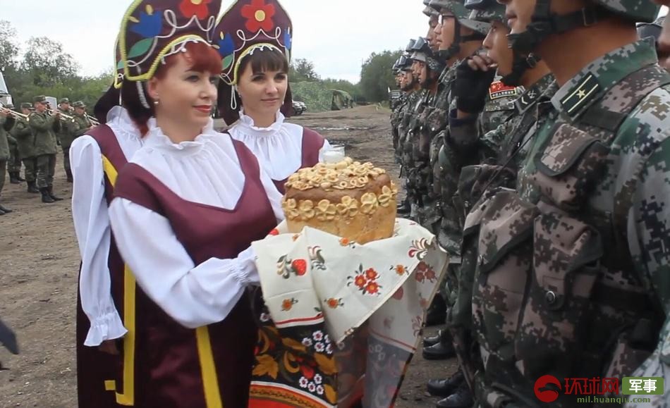 在解放军抵达后,俄军举行欢迎仪式,俄方在卸货站用俄罗斯面包和盐款待远道而来的中国军队。