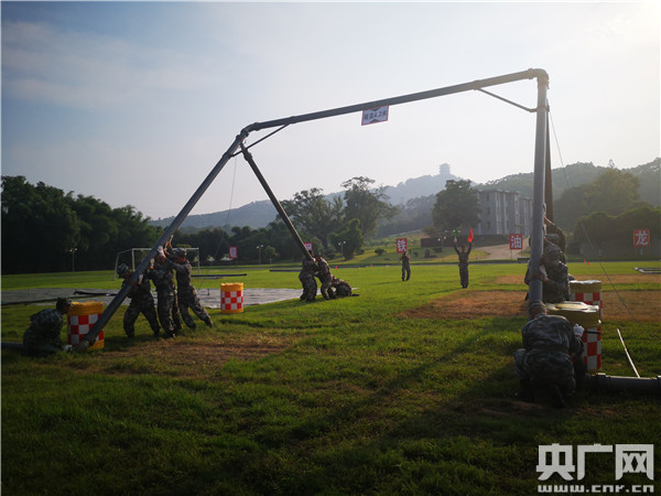 图为吴勇在指挥官兵进行门桥架设训练(央广网记者 王子衿 摄)