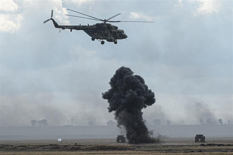 9月16日至21日,“中部-2019”演习在俄罗斯奥伦堡州等地举行。共有近13万名军人、2万余件(台)军事装备以及近600架战机参加此次演习。 这是9月20日拍摄的演习现场。 新华社发(叶甫盖尼·西尼岑 摄)
