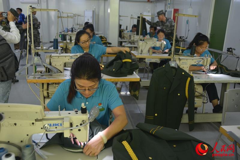 正在制作官兵受阅礼服。(摄影:黄子娟)