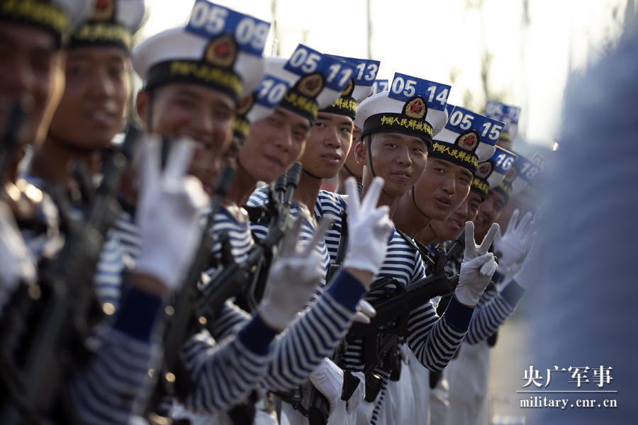 训练间隙,海军方队队员集体“卖萌”。高密 摄