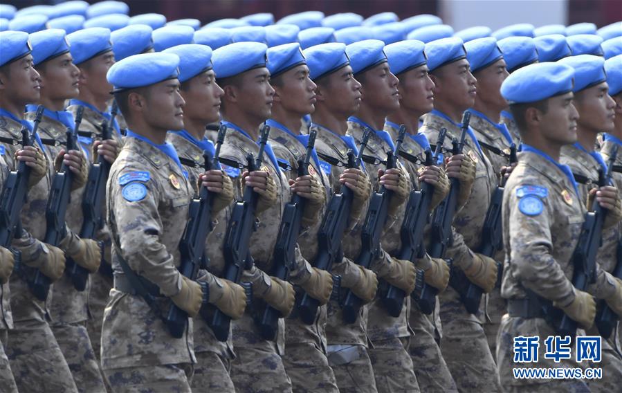 10月1日上午,庆祝中华人民共和国成立70周年大会在北京天安门广场隆重举行。这是受阅的维和部队方队。 新华社记者 武巍 摄