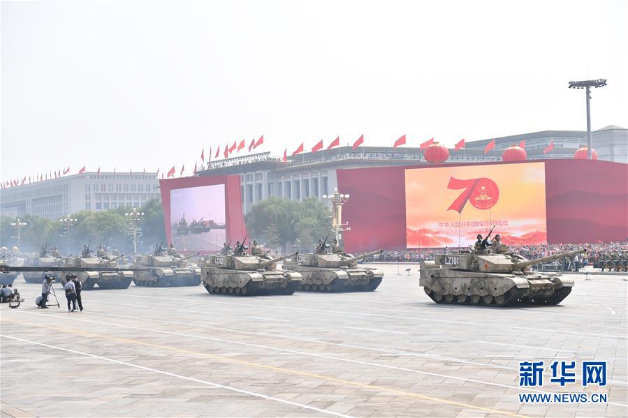 10月1日上午,庆祝中华人民共和国成立70周年大会在北京天安门广场隆重举行。这是坦克方队。 新华社记者 李尕 摄