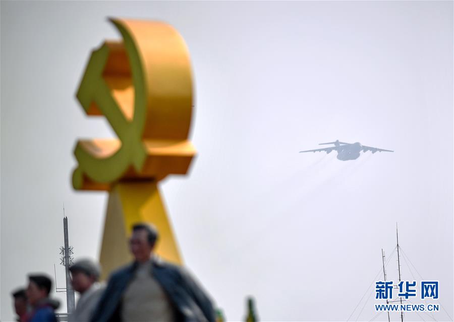 10月1日上午,庆祝中华人民共和国成立70周年大会在北京天安门广场隆重举行。这是受阅的运输机梯队从彩车上空飞过。 新华社记者 李任滋 摄