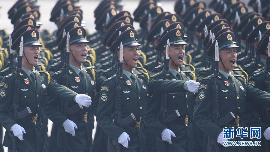 10月1日上午,庆祝中华人民共和国成立70周年大会在北京天安门广场隆重举行。这是行进中的陆军方队。 新华社记者 刘大伟 摄