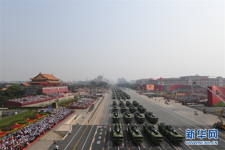 10月1日上午,庆祝中华人民共和国成立70周年大会在北京天安门广场隆重举行。这是东风-31甲改核导弹方队接受检阅。 新华社记者 殷刚 摄
