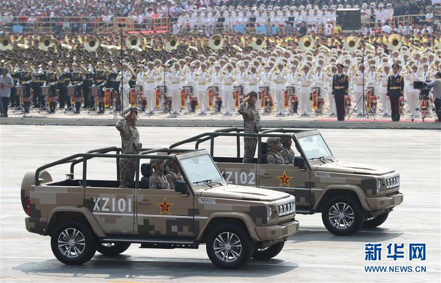 10月1日上午,庆祝中华人民共和国成立70周年大会在北京天安门广场隆重举行。这是信息作战第1方队接受检阅。 新华社记者 殷刚 摄
