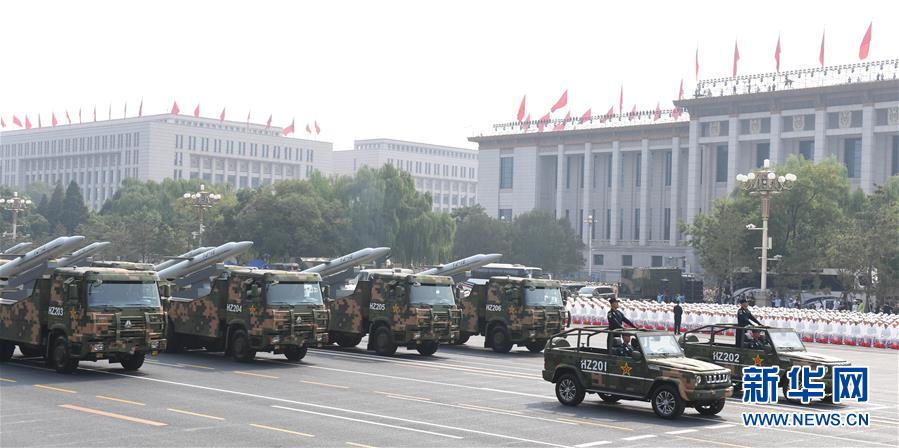10月1日上午,庆祝中华人民共和国成立70周年大会在北京天安门广场隆重举行。这是受阅的地空导弹第1方队。 新华社记者 张国俊 摄