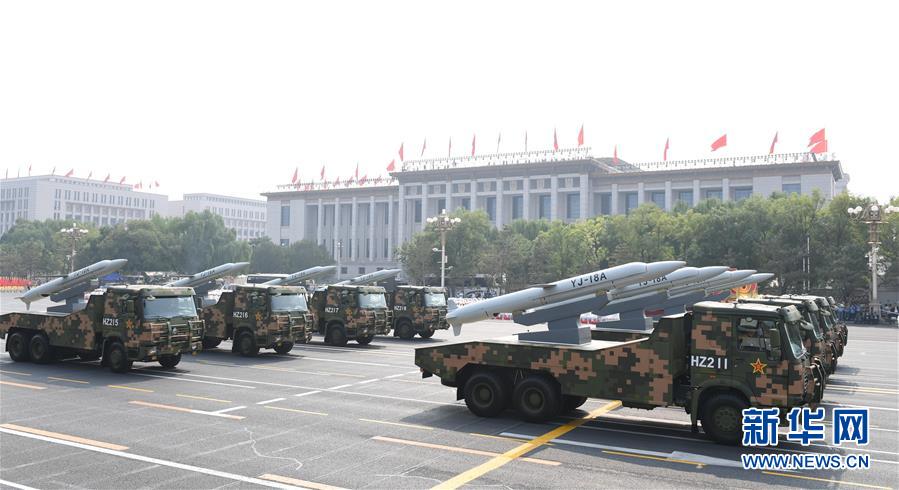 10月1日上午,庆祝中华人民共和国成立70周年大会在北京天安门广场隆重举行。这是受阅的舰舰/潜舰导弹方队。 新华社记者 张国俊 摄