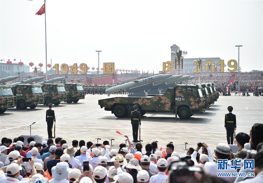 10月1日上午,庆祝中华人民共和国成立70周年大会在北京天安门广场隆重举行。这是舰舰/潜舰导弹方队。 新华社记者 李鑫 摄