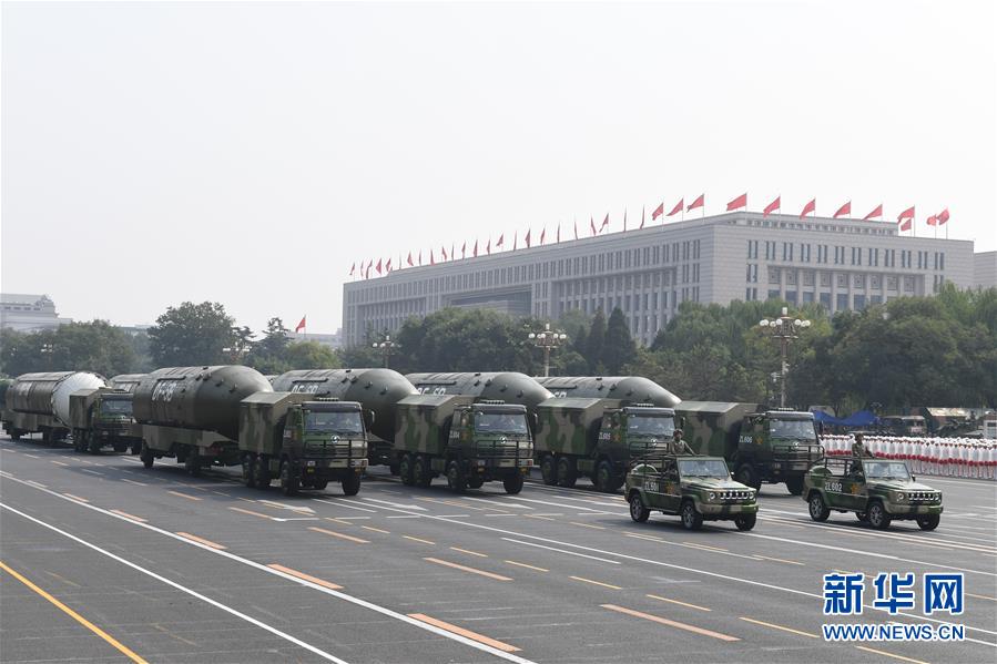 10月1日上午,庆祝中华人民共和国成立70周年大会在北京天安门广场隆重举行。这是受阅的东风-5B核导弹方队。 新华社记者 张国俊 摄