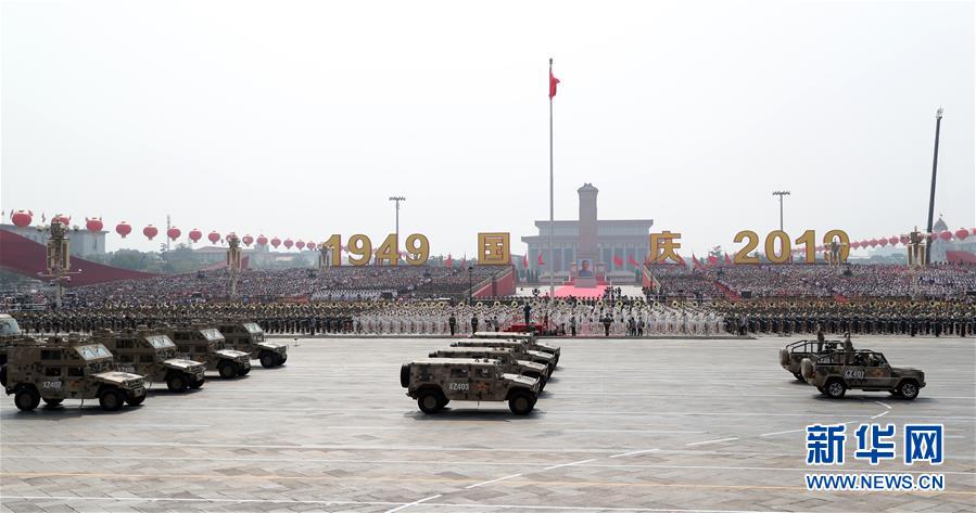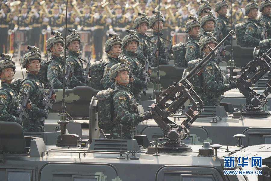 10月1日上午,庆祝中华人民共和国成立70周年大会在北京天安门广场隆重举行。这是信息作战第1方队接受检阅。 新华社记者 袁满 摄