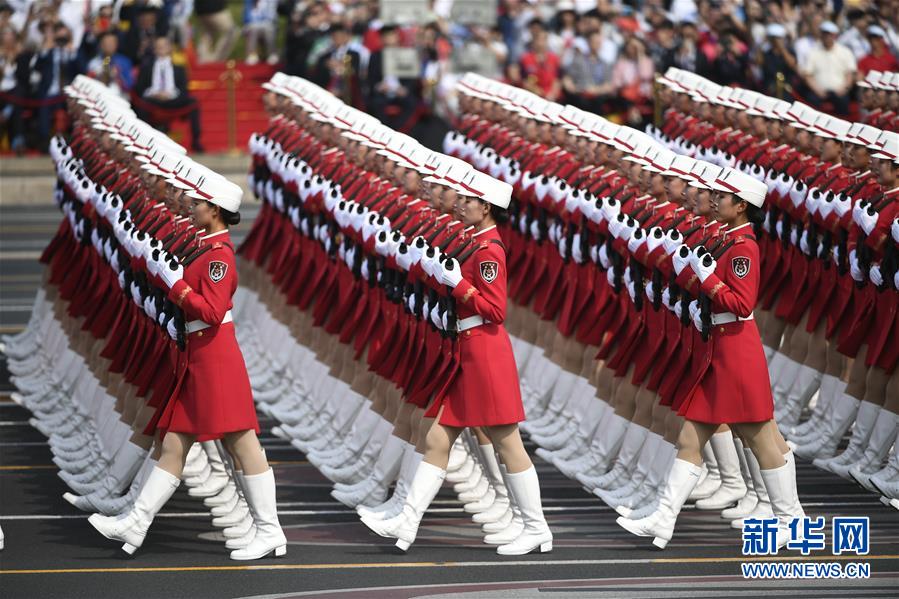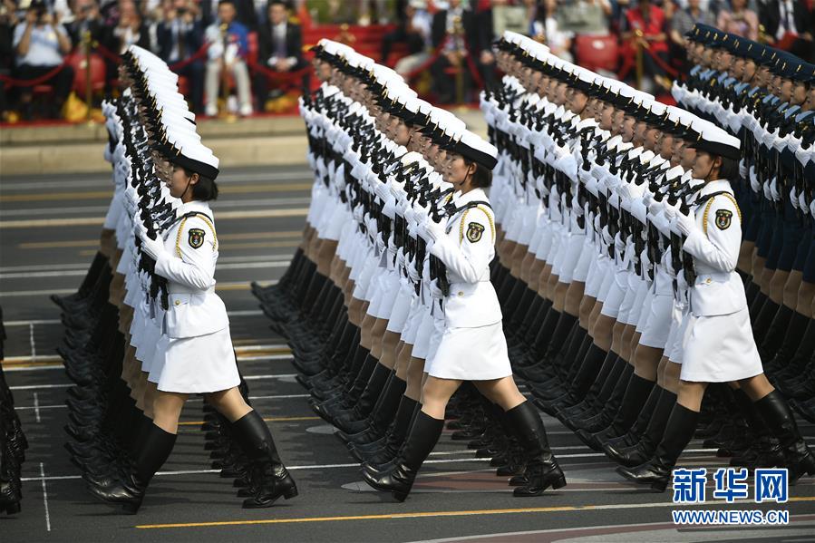 10月1日上午,庆祝中华人民共和国成立70周年大会在北京天安门广场隆重举行。这是受阅的女兵方队。 新华社记者 王鹏 摄