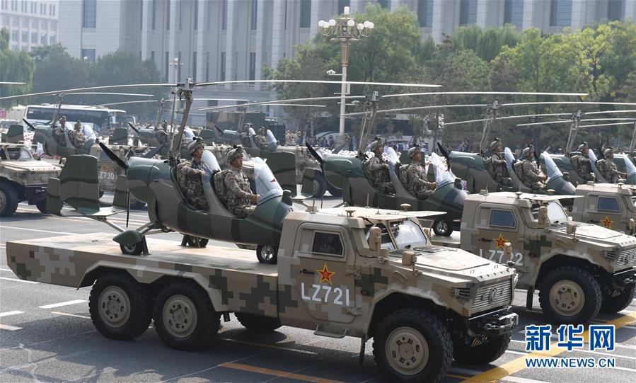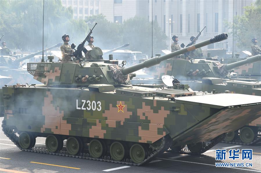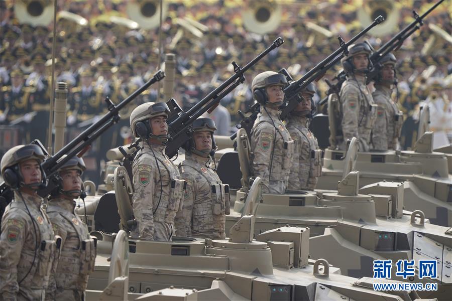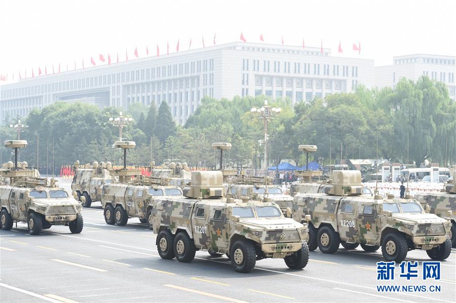 10月1日上午,庆祝中华人民共和国成立70周年大会在北京天安门广场隆重举行。这是轻型装甲方队接受检阅。 新华社记者 邢广利 摄