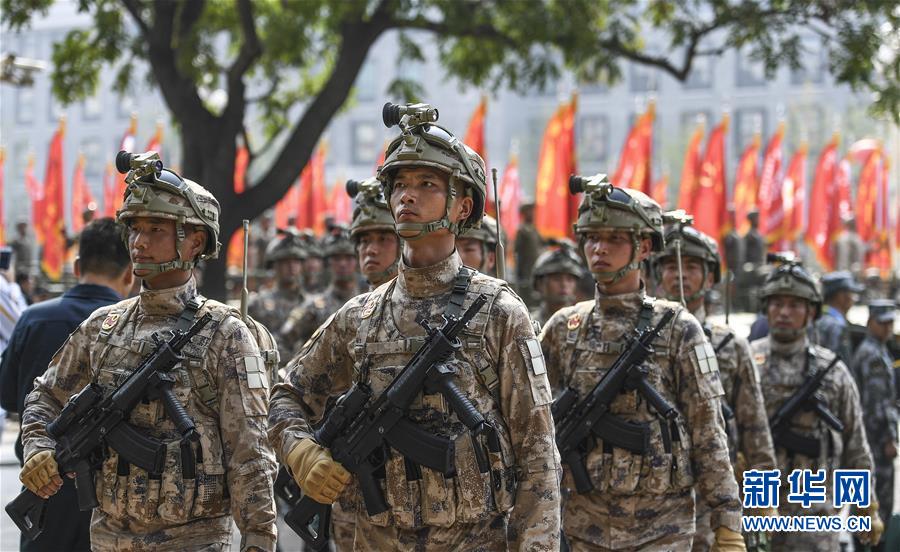 10月1日上午,庆祝中华人民共和国成立70周年大会在北京天安门广场隆重举行。 这是受阅官兵准备接受检阅。 新华社记者夏一方摄