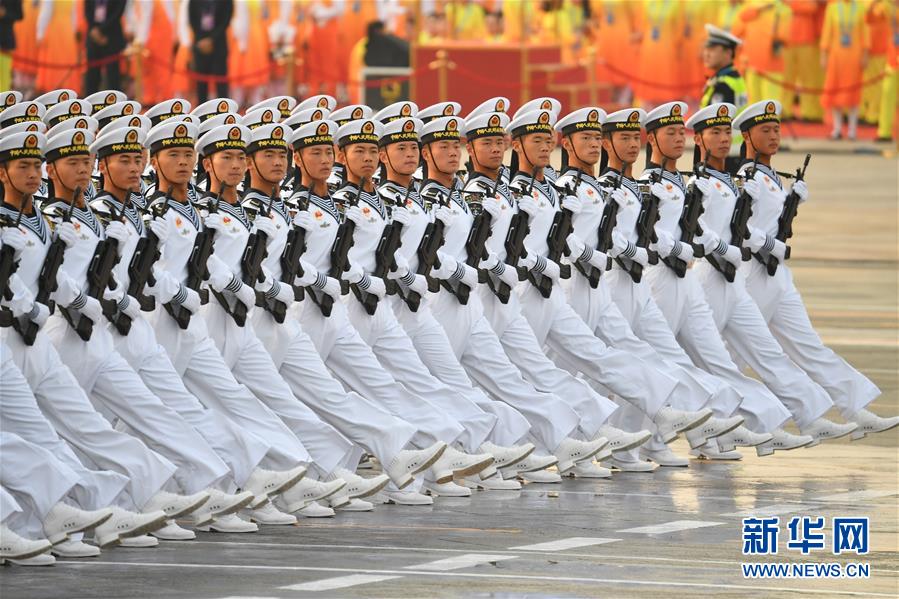 10月1日上午,庆祝中华人民共和国成立70周年大会将在北京天安门广场隆重举行。这是受阅部队在演练。 新华社记者 李鑫 摄