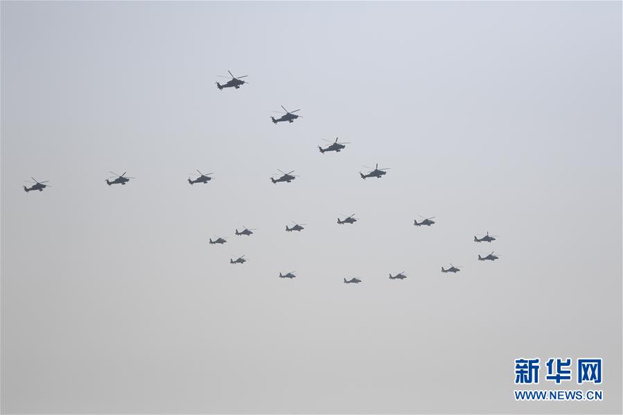 10月1日上午,庆祝中华人民共和国成立70周年大会在北京天安门广场隆重举行。 这是20架直升机在空中组成“70”字样。 新华社记者王凯摄