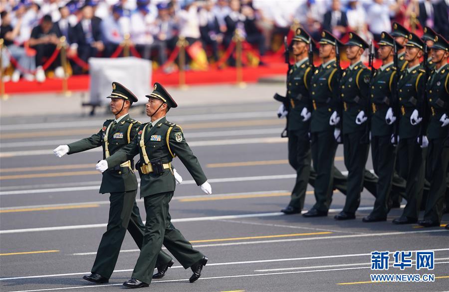 10月1日上午,庆祝中华人民共和国成立70周年大会在北京天安门广场隆重举行。 这是行进中的仪仗方队。 新华社记者 王毓国 摄