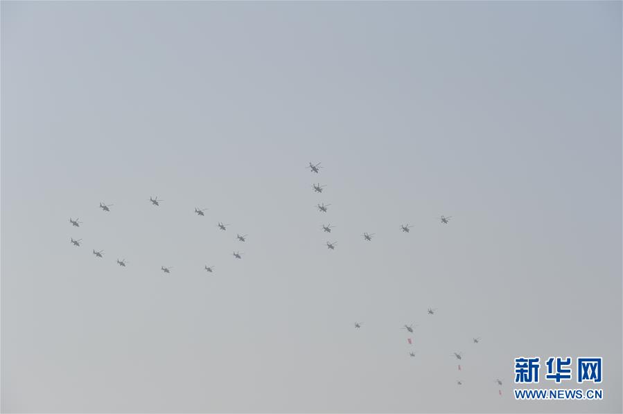 10月1日上午,庆祝中华人民共和国成立70周年大会在北京天安门广场隆重举行。这是空中护旗梯队。 新华社记者申宏摄