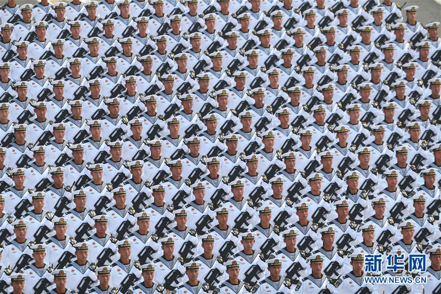 10月1日上午,庆祝中华人民共和国成立70周年大会在北京天安门广场隆重举行。这是海军方队。 新华社记者曹灿摄