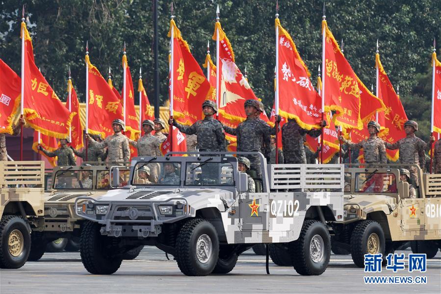10月1日上午,庆祝中华人民共和国成立70周年大会在北京天安门广场隆重举行。这是行进中的战旗方队。 新华社记者 殷刚 摄