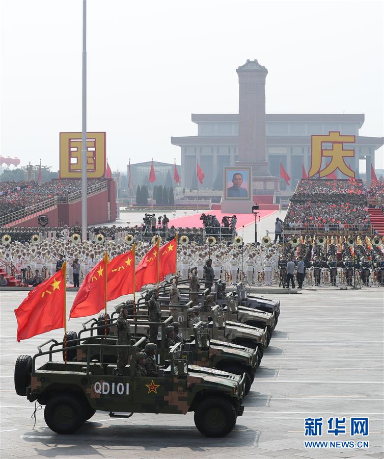10月1日上午,庆祝中华人民共和国成立70周年大会在北京天安门广场隆重举行。这是战旗方队接受检阅。 新华社记者 殷刚 摄