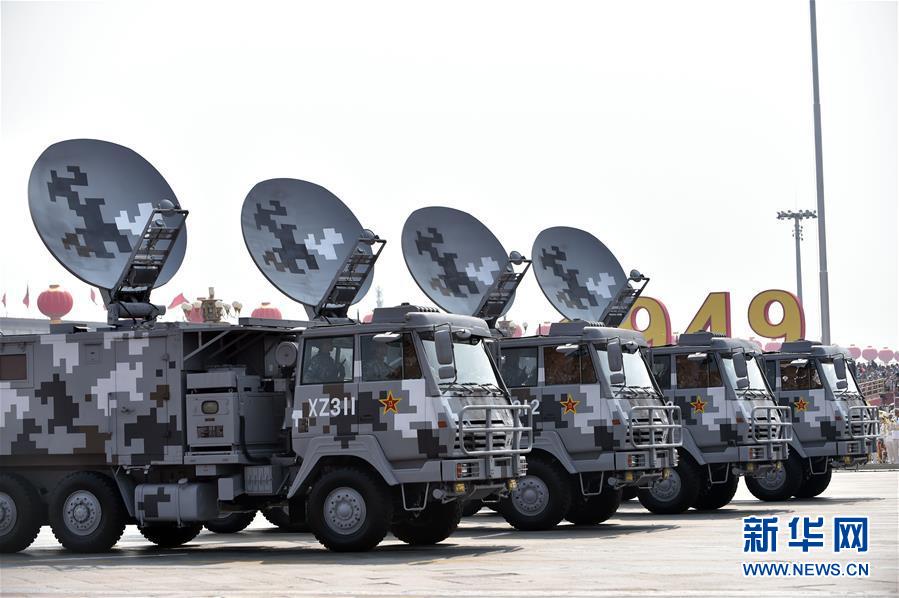 10月1日上午,庆祝中华人民共和国成立70周年大会在北京天安门广场隆重举行。这是信息作战方队。 新华社记者 觉果 摄