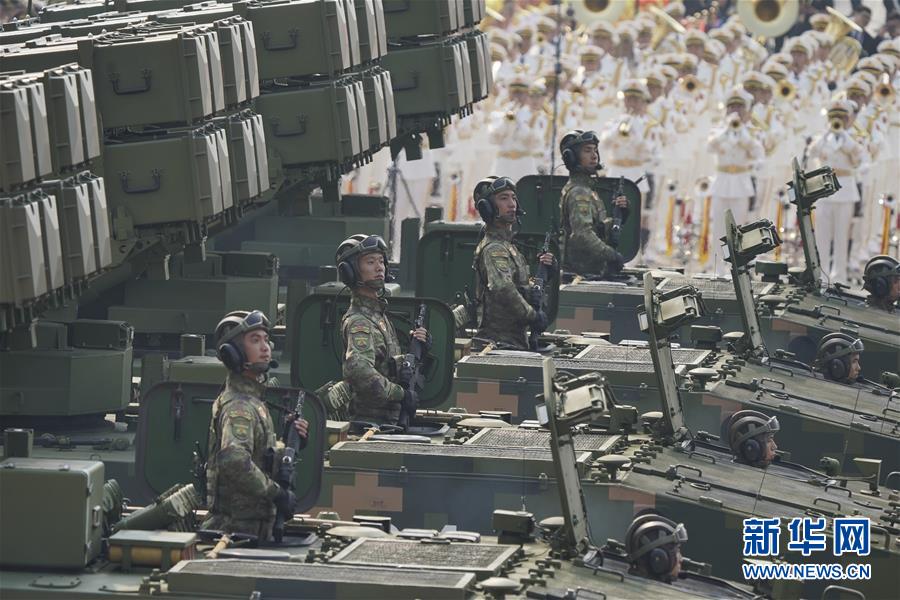 10月1日上午,庆祝中华人民共和国成立70周年大会在北京天安门广场隆重举行。这是反坦克导弹方队接受检阅。 新华社记者 邢广利 摄