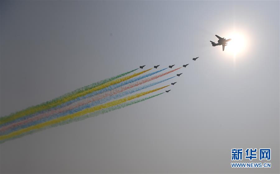 10月1日上午,庆祝中华人民共和国成立70周年大会在北京天安门广场隆重举行。 这是领队机梯队。 新华社记者 陶希夷 摄