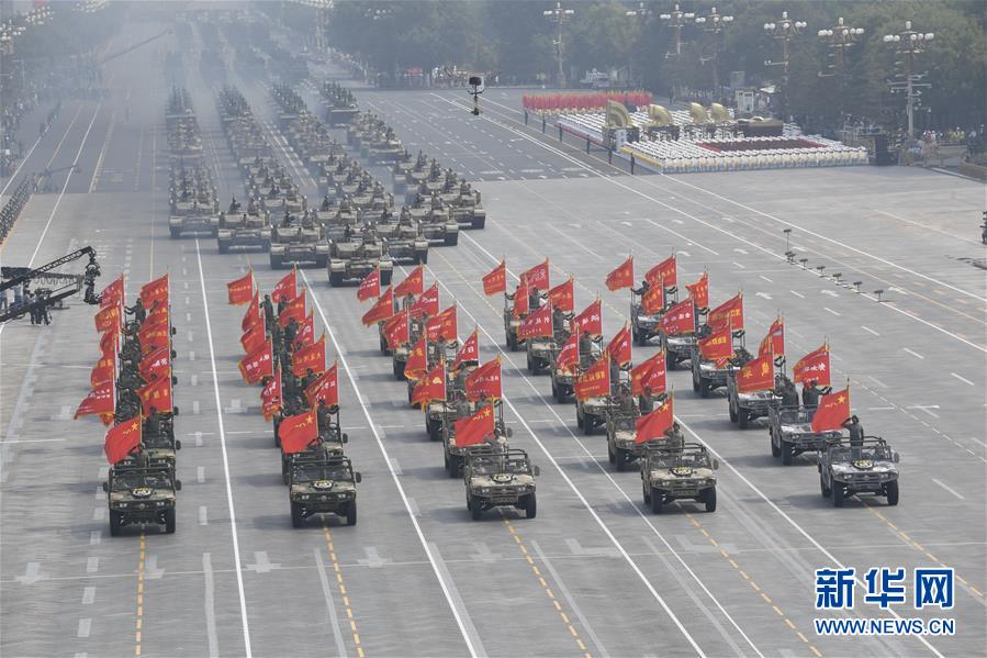 10月1日上午,庆祝中华人民共和国成立70周年大会在北京天安门广场隆重举行。这是战旗方队。 新华社记者申宏摄