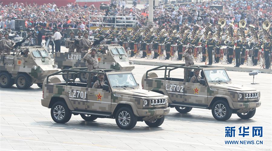 10月1日上午,庆祝中华人民共和国成立70周年大会在北京天安门广场隆重举行。这是特战装备方队接受检阅。 新华社记者 殷刚 摄