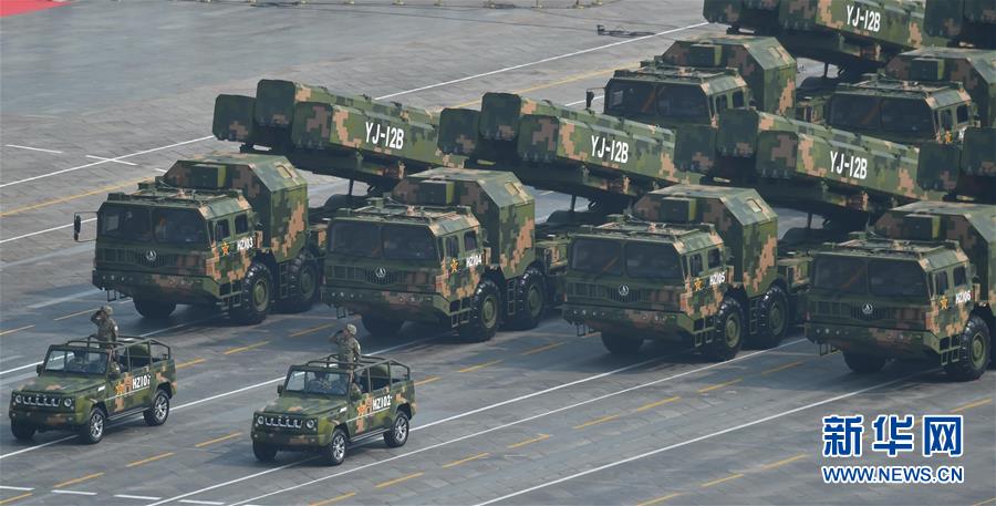 10月1日上午,庆祝中华人民共和国成立70周年大会在北京天安门广场隆重举行。 这是岸舰导弹方队。 新华社记者 宋为伟 摄