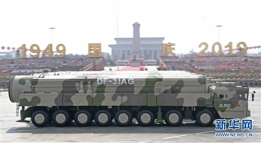 10月1日上午,庆祝中华人民共和国成立70周年大会在北京天安门广场隆重举行。这是东风-31甲改核导弹方队通过天安门广场。 新华社记者 袁满 摄