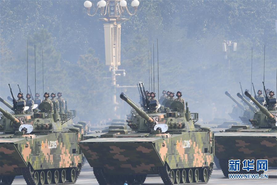 10月1日上午,庆祝中华人民共和国成立70周年大会在北京天安门广场隆重举行。 这是两栖突击车方队。 新华社记者 姜克红 摄