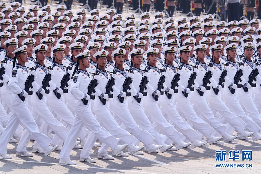 10月1日上午,庆祝中华人民共和国成立70周年大会在北京天安门广场隆重举行。这是海军方队接受检阅。 新华社记者 殷刚 摄