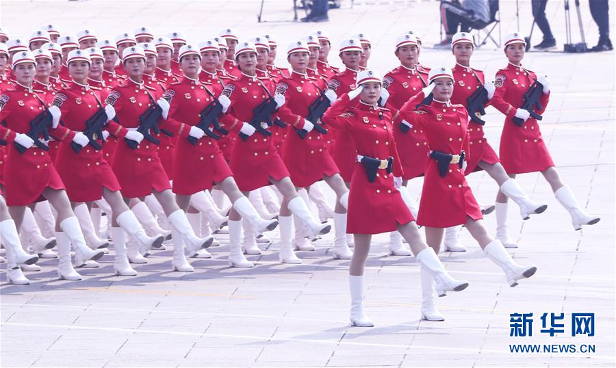 10月1日上午,庆祝中华人民共和国成立70周年大会在北京天安门广场隆重举行。这是民兵方队接受检阅。 新华社记者 殷刚 摄