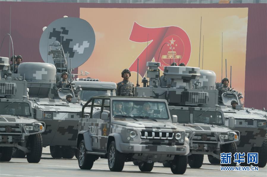 10月1日上午,庆祝中华人民共和国成立70周年大会在北京天安门广场隆重举行。这是信息作战第3方队。 新华社记者 陈建力 摄